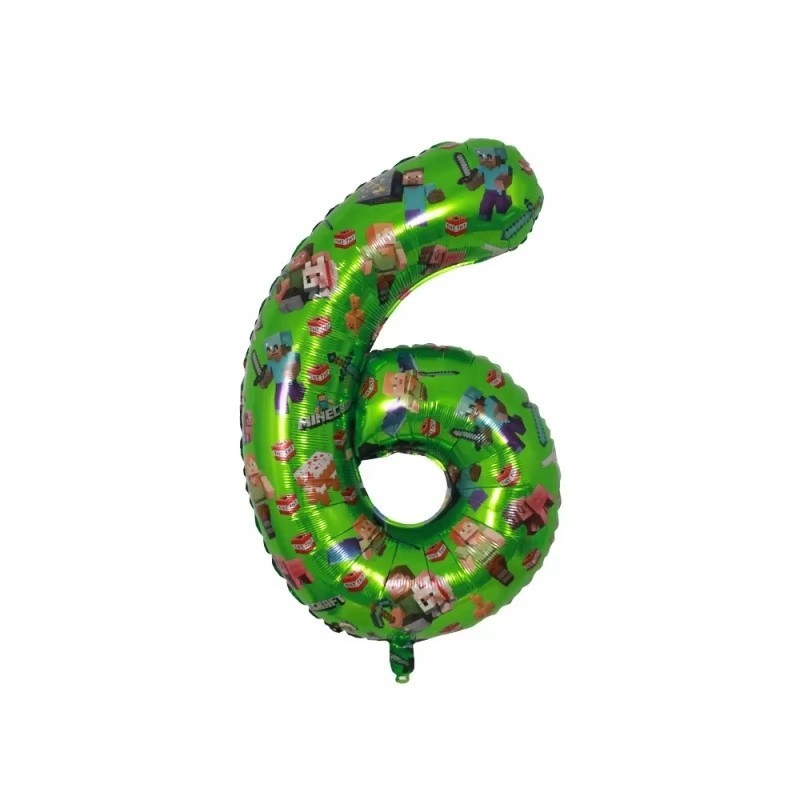 Szukasz wyjątkowej dekoracji na urodziny małego fana gry Minecraft? Ten zielony balon foliowy w kształcie cyfry "6" z postaciami z popularnej gry to idealny wybór!